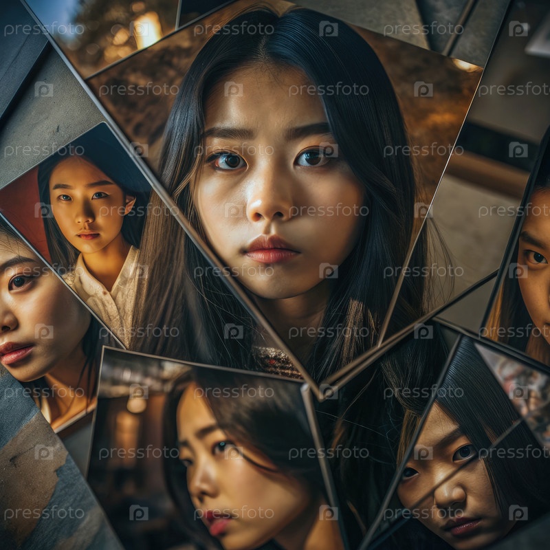 Близкий план азиатской девушки, захваченной в художественном диагональном расположении полотна