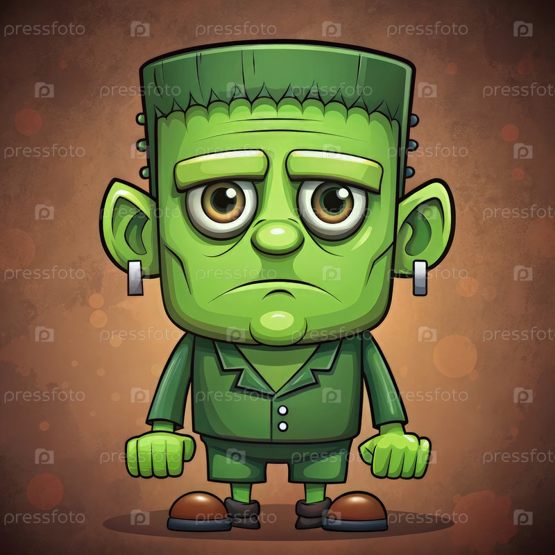 Персонаж Франкенштейна в стиле мультфильма с зеленым телом и выразительными чертами