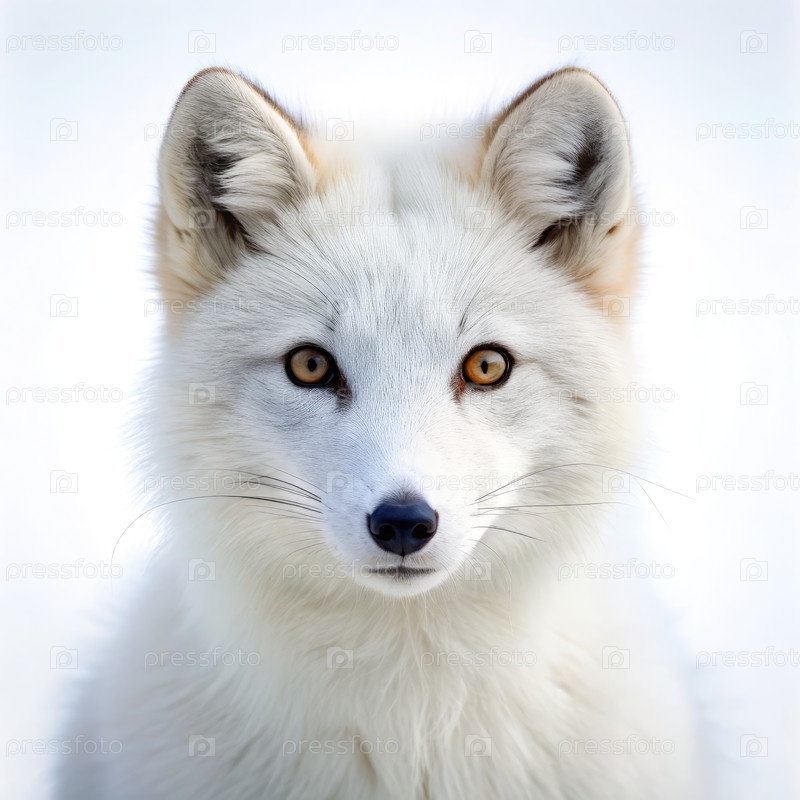Арктическая лиса смотрит прямо на зрителя, демонстрируя свое яркое меховое покрывало и выразительные глаза