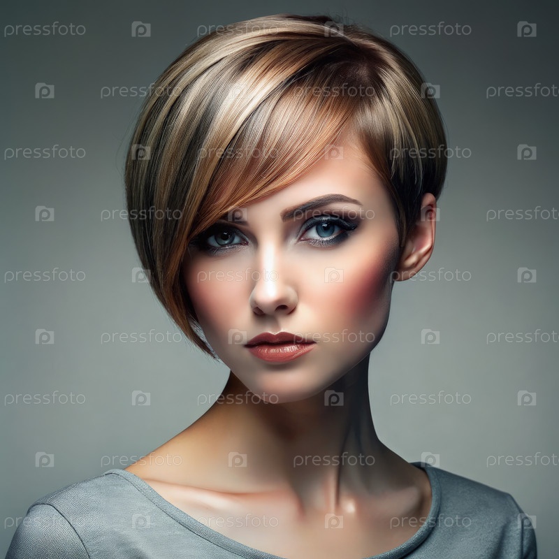 Женщины демонстрируют асимметричную стрижку в минималистической студии