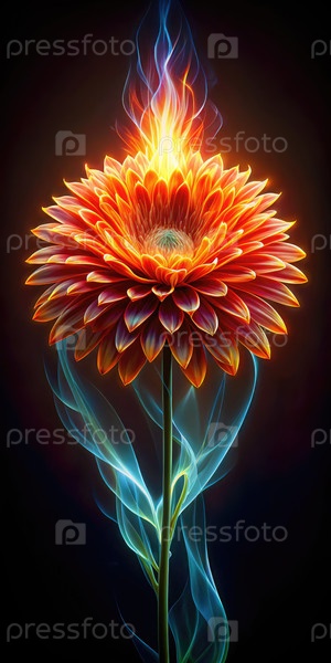 Светящийся мистический цветок излучает огненные цвета в темную ночь