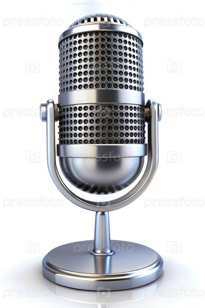 Классический серебряный микрофон с ретро-дизайном на белом фоне