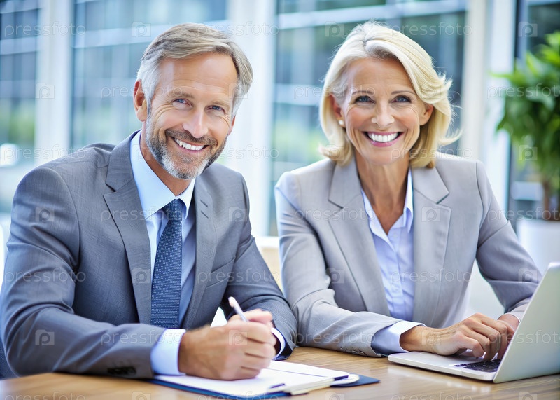Бизнес-партнеры сотрудничают в офисе во время солнечного дня