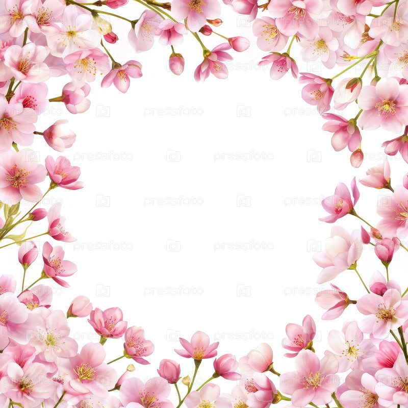 Цветки вишневых цветов в рамке стандартной шкалы с чистым фоном весной