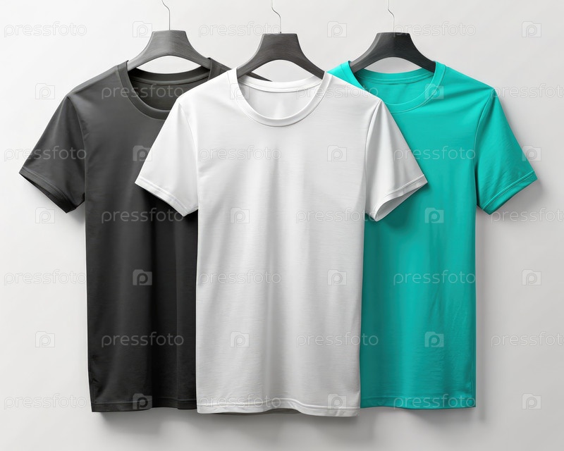 Три непринужденных рубашки, выставленные на вешалки в нейтральной обстановке