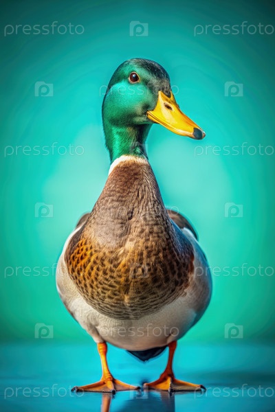 Дикая утка демонстрирует яркое оперение на твердом фоне в захватывающей композиции