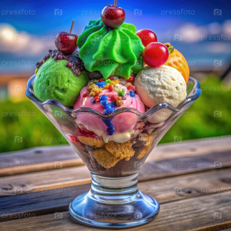 Горячее мороженое Sundae Delight Идеально приготовлено под солнцем на берегу моря