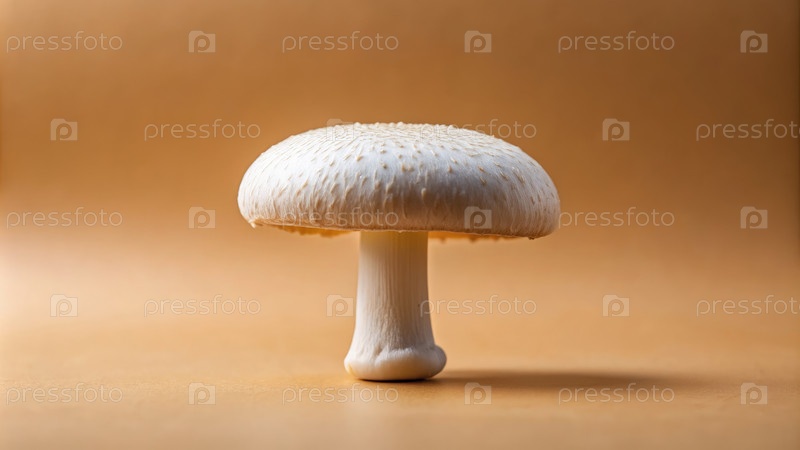Близкий план белого гриба на бежевом фоне под студийным освещением