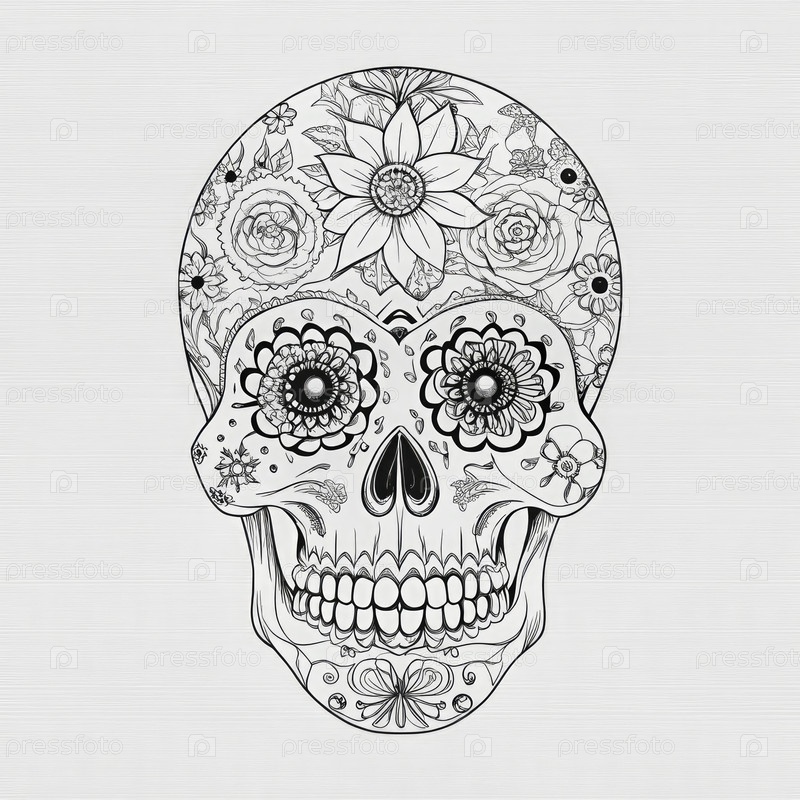 Подробный дизайн черепа Дня мертвых с цветочными узорами для празднования Хэллоуина