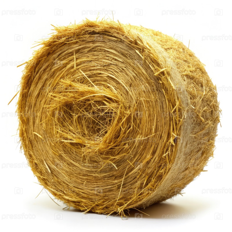 Natural Hay Bale on White Background Featuring Rustic Agricultural Charm and Simple Rural Aesthetics Captured in Standard Scale Perspective (Натуральный сенаж на белом фоне с деревенским сельскохозяйственным обаянием и простой сельской эстетикой, захвачен