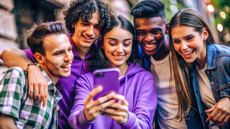 Молодые люди, использующие смартфоны во время просмотра стандартной шкалы на открытом воздухе