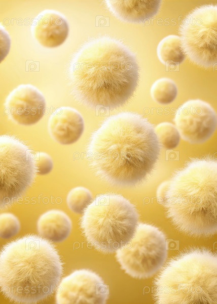 Пушистые желтые сферы, плавающие на светло-желтом фоне в мягком свете