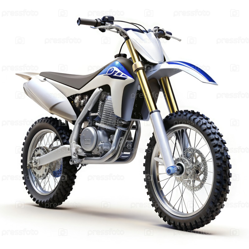 Мотоцикл мотокросса на белом фоне, демонстрирующий особенности внедорожного дизайна