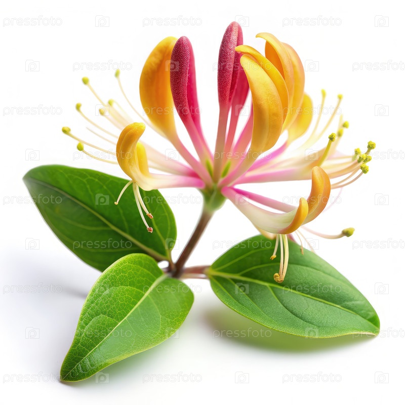 Цветок медвежонка с яркими лепестками и зелеными листьями на белом фоне