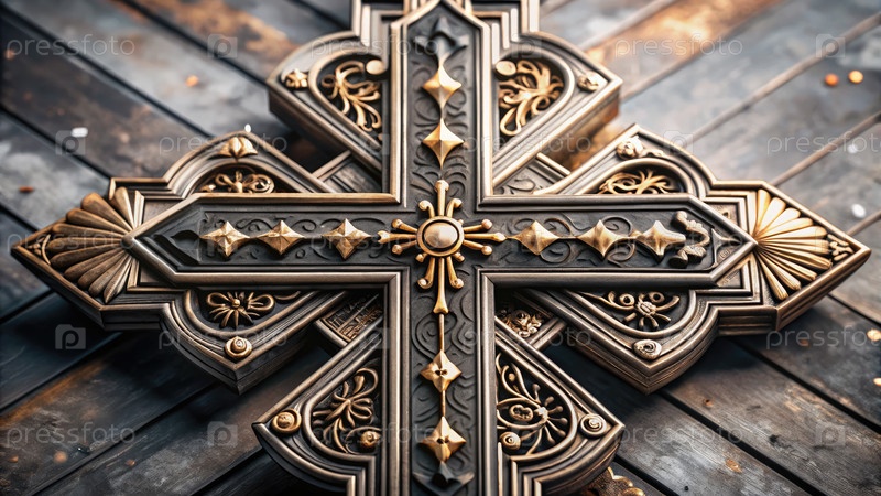 Сложный дизайн религиозного креста на деревянной поверхности со сложными деталями