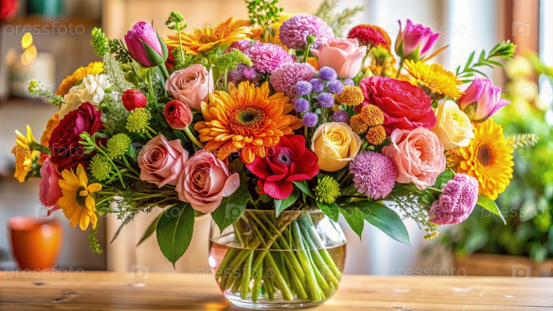 Красочный букет цветов для домашнего украшения в солнечном жилом помещении