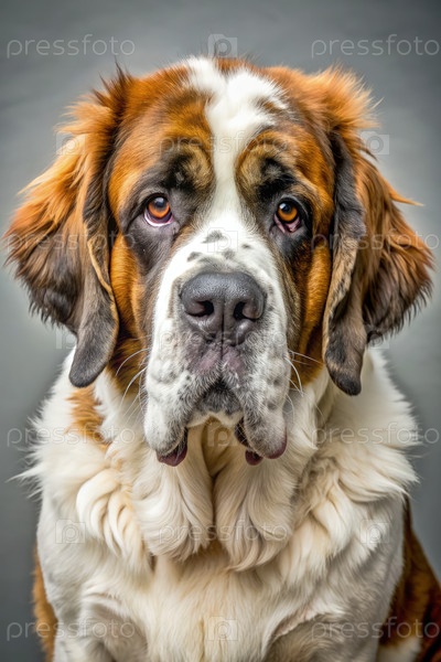 Сен-Бернард с беспорядочной шерстью смотрит прямо в камеру внутри