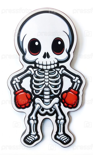 Красивый боксерский скелет с иллюстрацией наклейки "Die Cut" на белом фоне