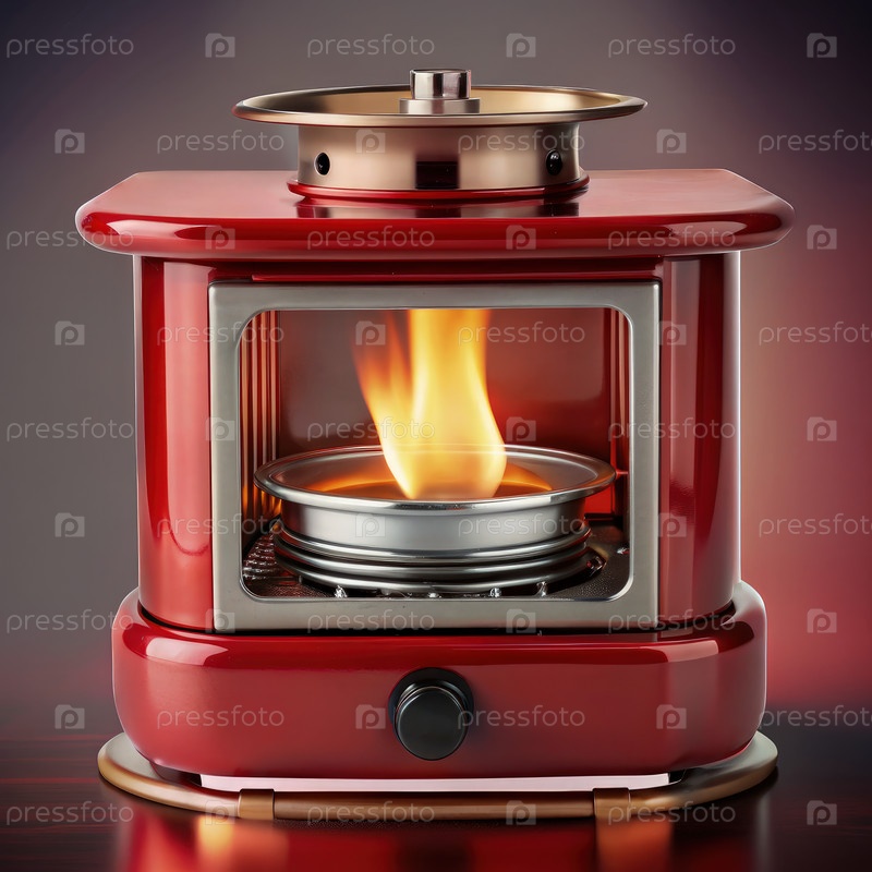 Элегантный темно-красный отопительный прибор с пламенем, видимым в уютной атмосфере