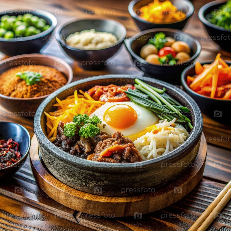 Вкусная корейская еда, подаваемая в каменной миске в столичном ресторане, демонстрирует яркие ингредиенты и традиционные ароматы