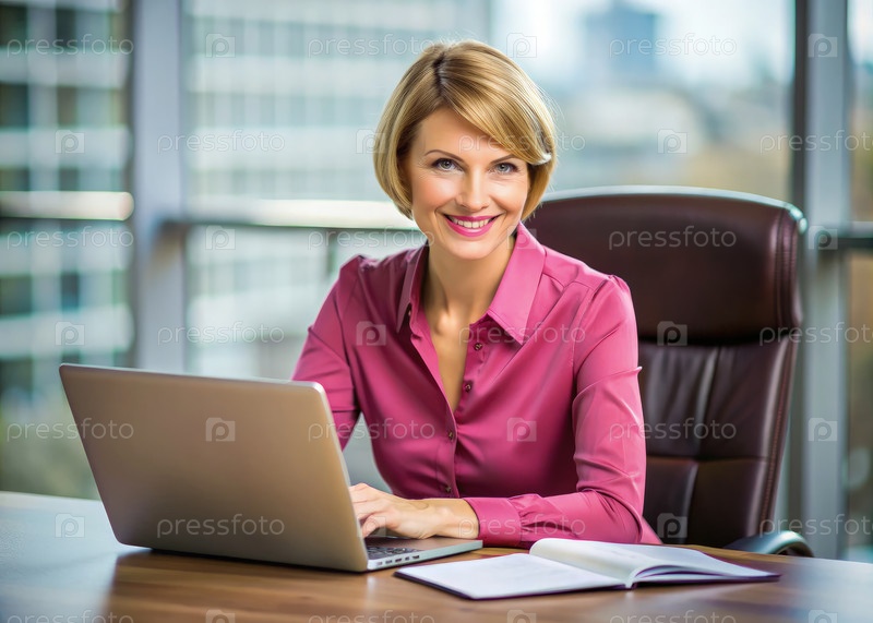 Темнокожая блондинка работает за ноутбуком в современном офисе днем, воплощая профессионализм и концентрацию