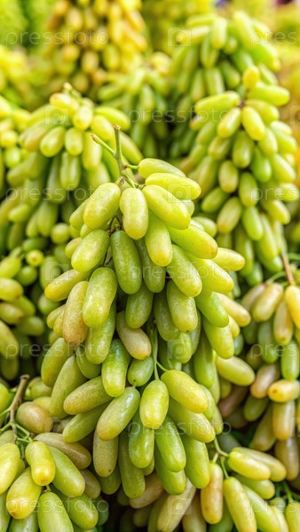 Яркий букет виноградных лоз, отображаемых на горизонтальном фоне, демонстрируя свой свежий зеленый цвет, поскольку они висят вместе в изобилии
