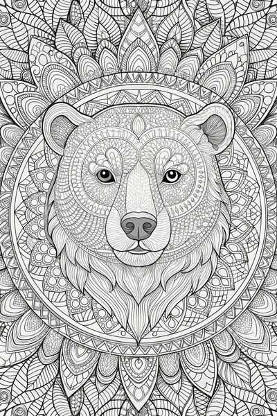 Элегантная окрасочная страница вдохновленная мандалой с подробным дизайном медведя для художественной терапии взрослых