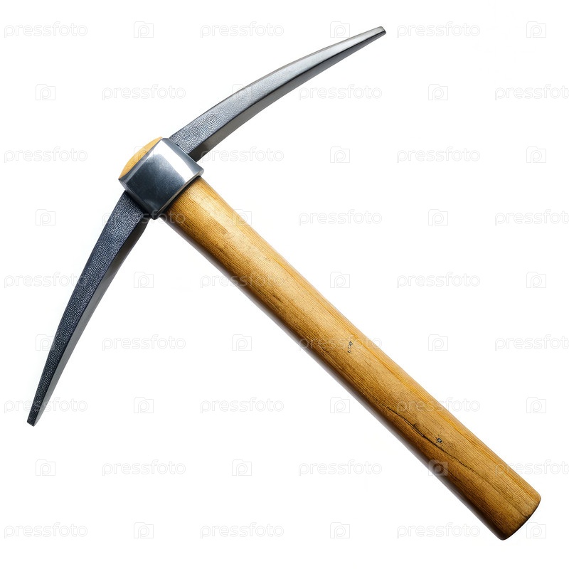 Пикакс, опирающийся на белый фон и готовый к выполнению майнинговых задач