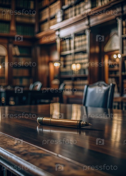 Пустой стол с ручкой в классической библиотеке