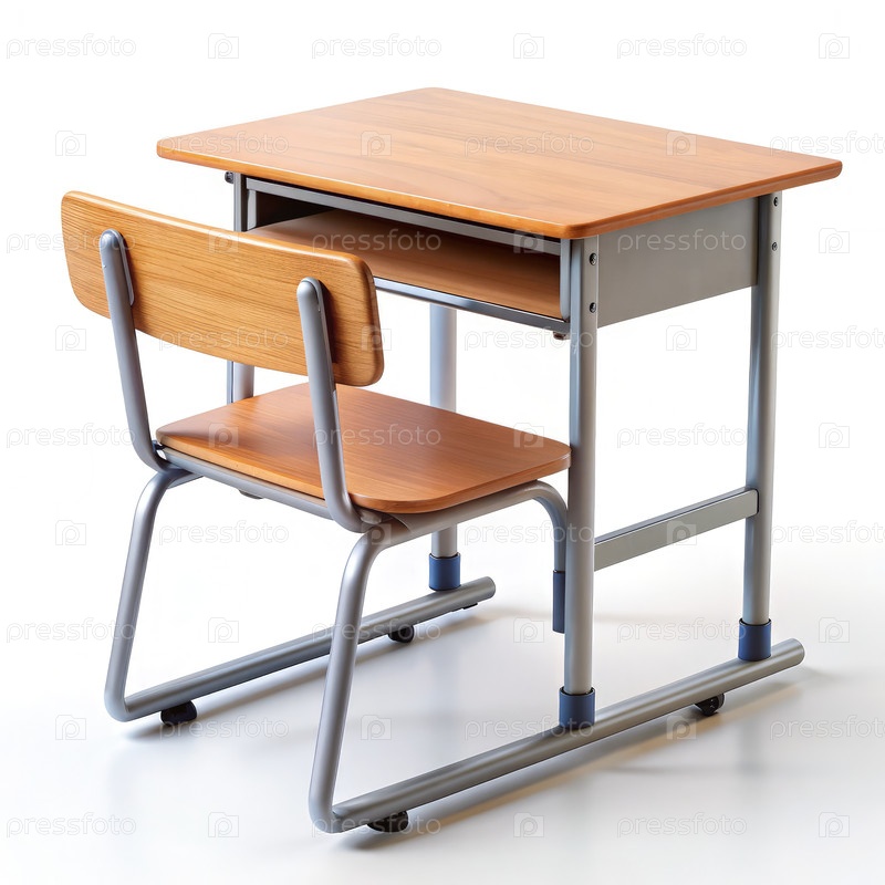 Стандартный школьный стол и стул для занятий в классе днем. генеративная ИИ