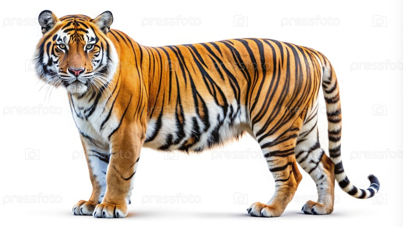 Боковой вид огромного дикого тигра, отображаемого на белом фоне