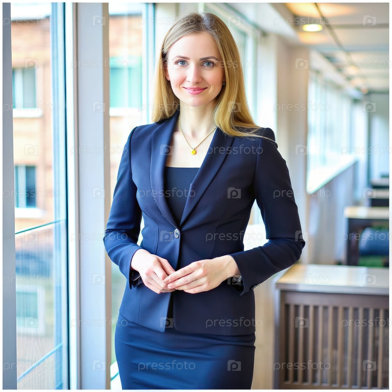 Бизнес-профессионал в черном костюме уверенно позирует у окна офиса