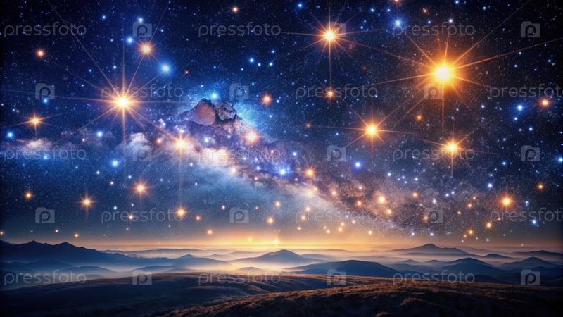 Яркое звездное поле, мерцающее в темном ночном небе над далекими горами