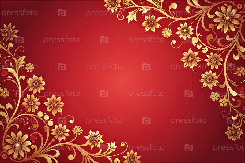 Элегантный королевский красный градиент на фоне свадебного приглашения с золотым цветочным дизайном