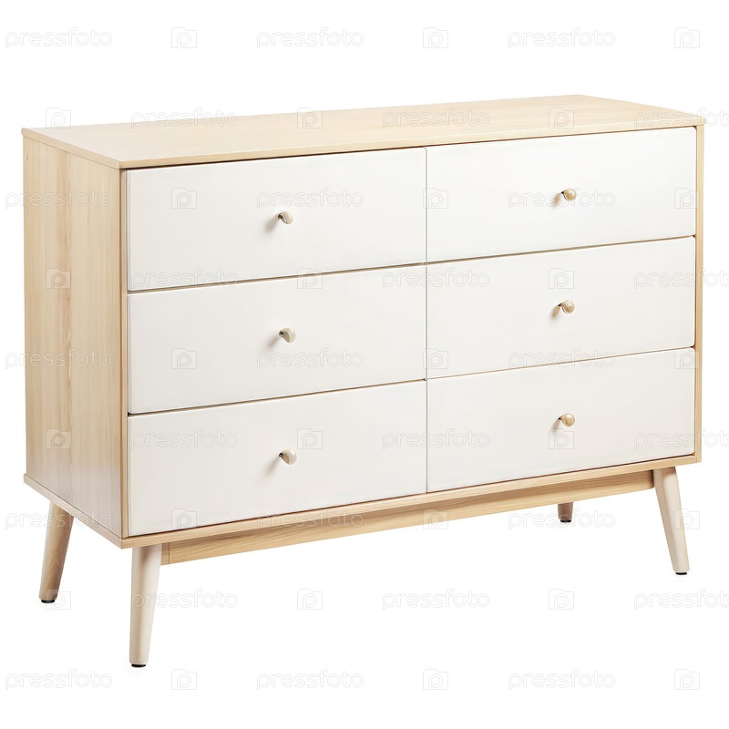 Минималистский комод из светлого дерева с шестью ящиками в яркой комнате