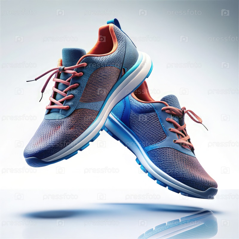 Спортивные кроссовки, плавающие на чистом белом фоне