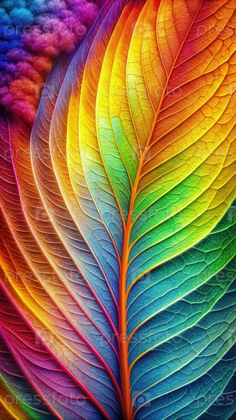 Вибрирующие листья радуги со сложными волнистыми узорами, демонстрирующими спектр цветов и текстуры в живой природной обстановке