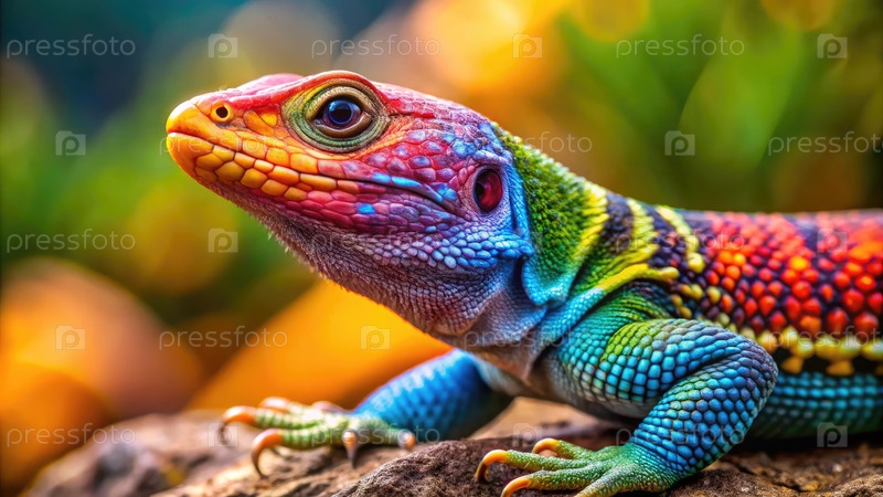 Красочная ящерица греется на скале в своей яркой природной среде обитания