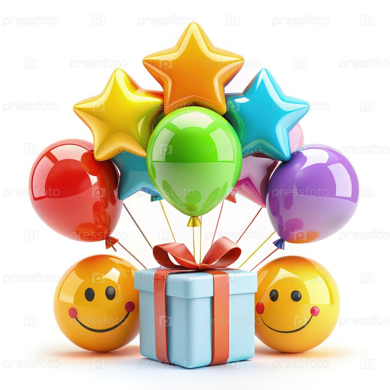 Веселый дизайн рождественской открытки с яркими воздушными шарами и упакованным подарком, идеально подходит для празднования особых моментов