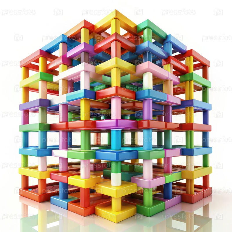 Красочная абстрактная структура, созданная с помощью слоистых блоков на белом фоне