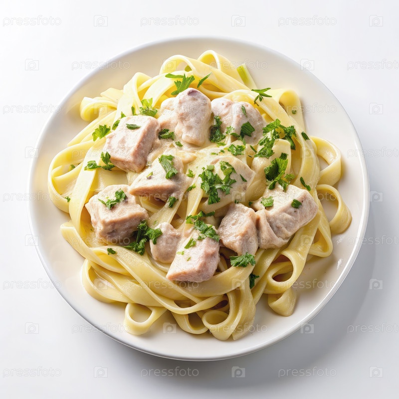 Вкусная сливочная курица Альфредо с свежим феттучином, подаваемая в уютном итальянском бистро