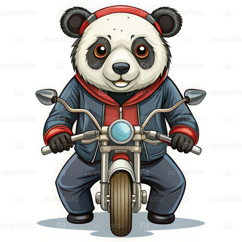 Иллюстрация байкера-панды, едущего на мотоцикле в повседневной позе