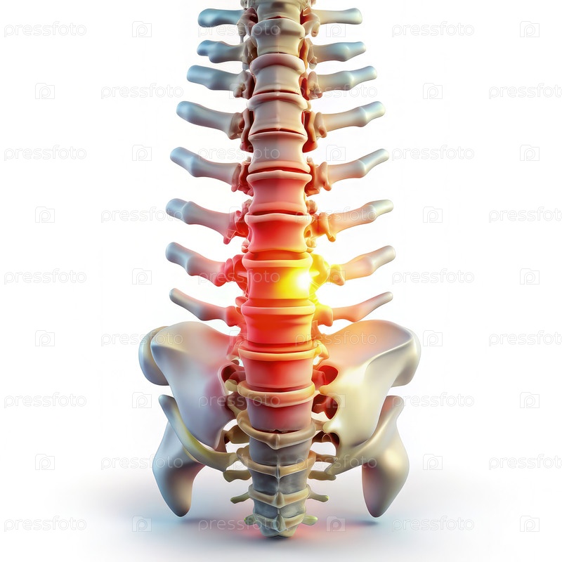 Иллюстрация поясничного позвоночника, показывающая травму на белом фоне