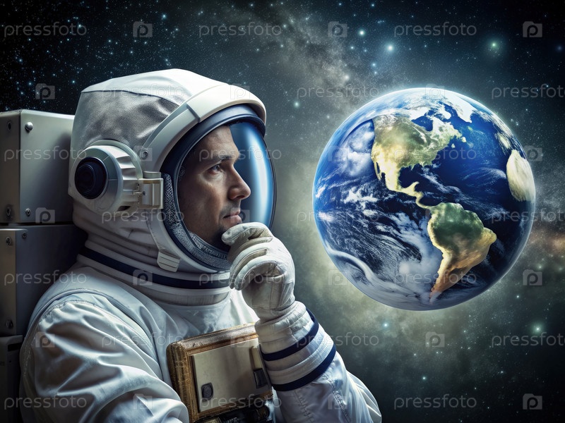 Астронавт размышляет, наблюдая за Землей в космической обстановке под темой песни Fim do Mundo