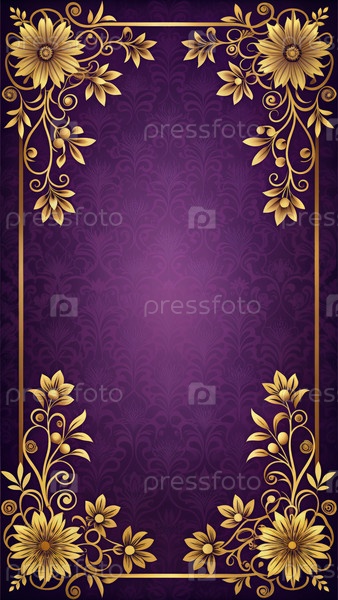 Элегантное темное свадебное приглашение с украшенным цветочным дизайном на фиолетовом фоне