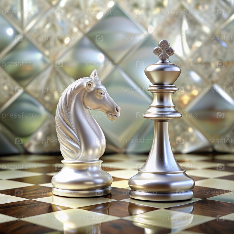 Элегантная жемчужная мать шахматных фигур на сверкающем фоне