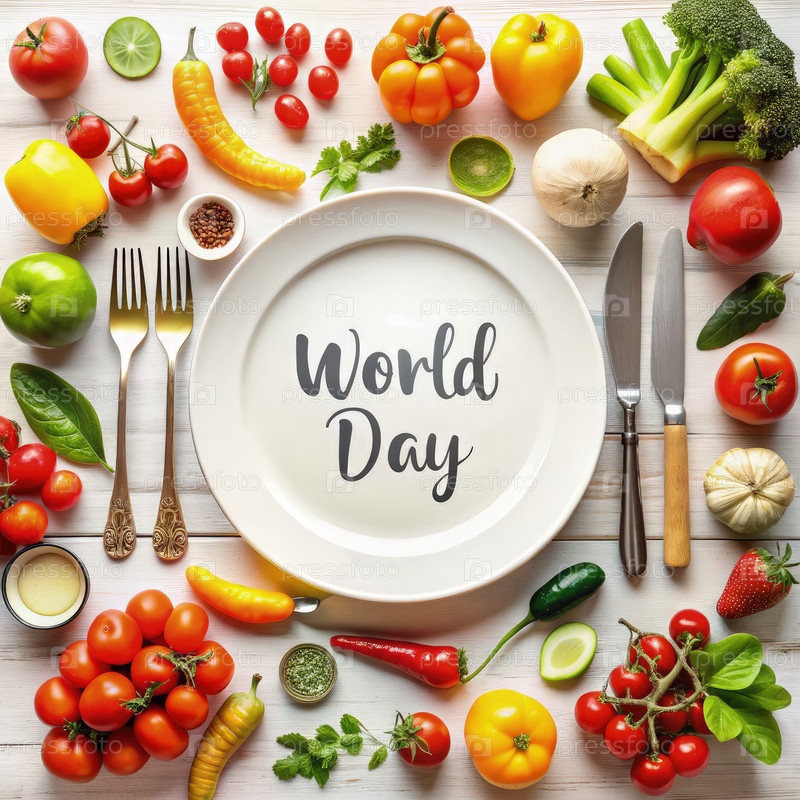 Празднование Всемирного дня продовольствия с свежими фруктами и овощами на столе