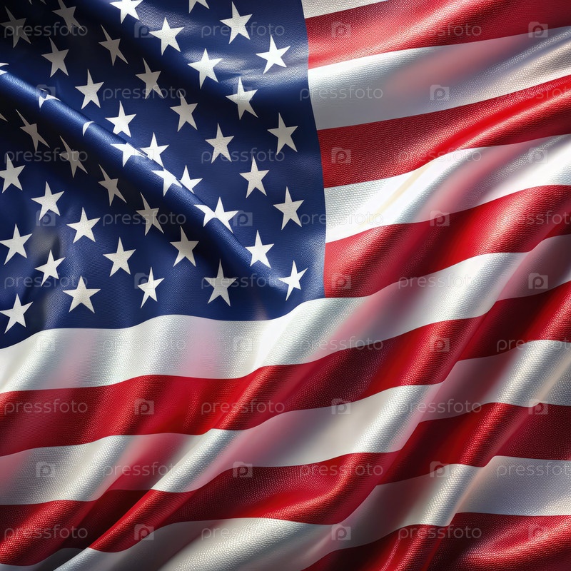 Близкий план американского флага, размахивающего ветром, демонстрируя его яркие цвета и подробные звезды и полосы
