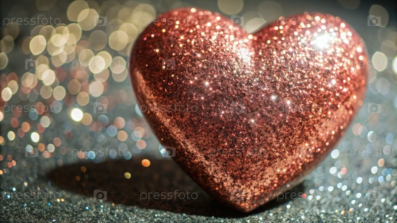 Близкий взгляд на сверкающее красное сердце, которое ярко светит на темном фоне, добавляя оттенок романтики и элегантности в любую обстановку