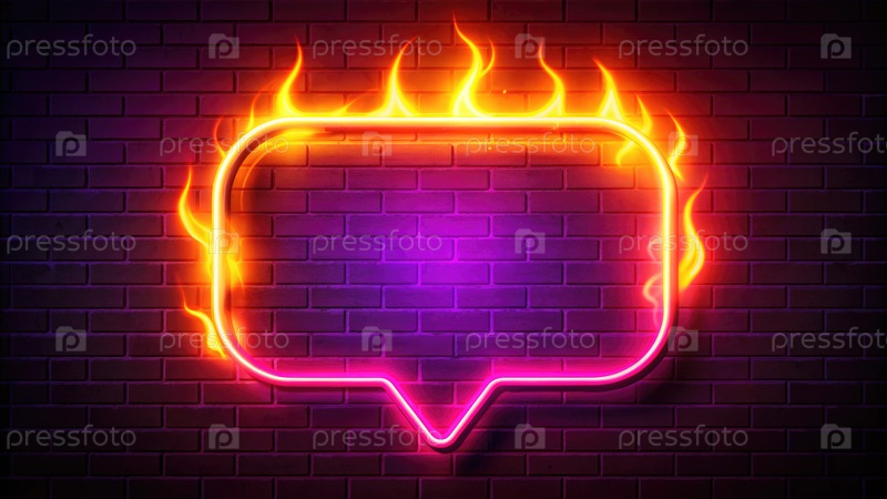 Вибрирующий флаг неонового пламени с дизайном чата пузырьки речи в стандартной шкале. генеративный ИИ